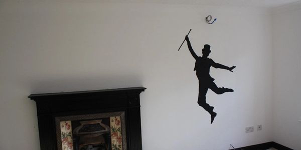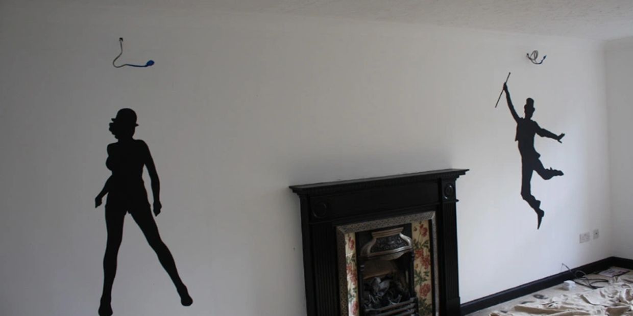 Silhouettes of Liza Minnelli and Fred Astaire painted in a living room while the home owner enjoyed spa treatment.