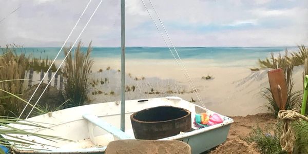 A beach themed mural painted on a plywood panel for ITV1's 'Love Your Garden' with Alan Titchmarsh.